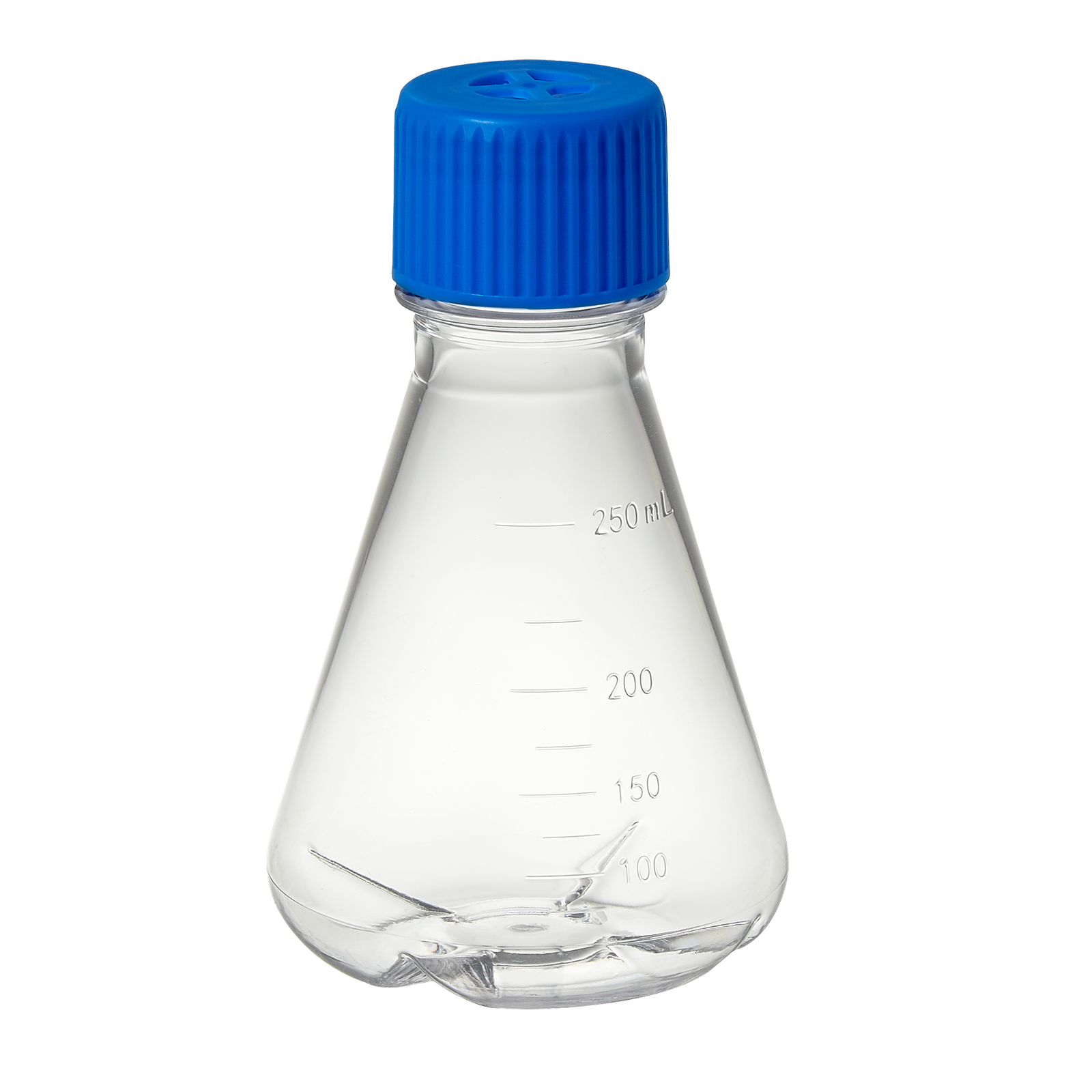 Flask, Erlenmeyer, 250mL, Polycarbonate, baffled bottom w/ vented screw cap, Sterile, indiv wrapped, 12/CS
